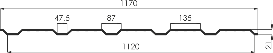 Профлист НС-21 Каскад 1170 (1120) (0,65/7004 серый) - универсальный профилированный лист, который отлично подходит для строительства стен, заборов и кровли. Высота волны 21 мм. и продольные ребра жесткости (3шт) на каждой волне, делают этот профиль очень стойким к снеговым нагрузкам.