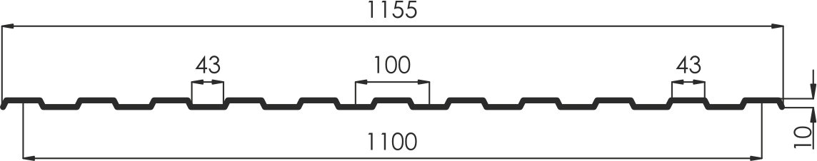 - рабочая ширина (вычитается перекрытие соседних листов при монтаже) 1100 мм,